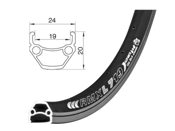Ráfek Remerx Dragon Line 599x19, 36 děr. Soustružené brzdné plochy, bez nýtu, černý elox.